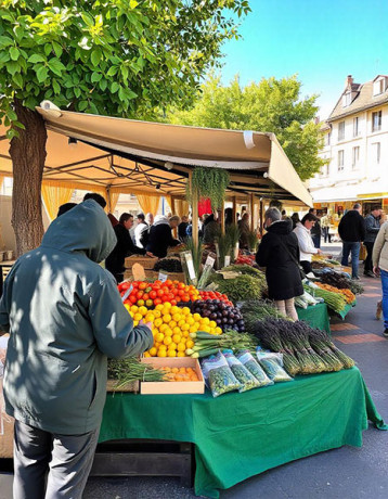 Le samedi, le marché s’étend davantage, accueillant artisans et commerçants divers. L’atmosphère devient plus animée, avec des étals proposant tissus provençaux, poteries, savons parfumés et autres trésors. Les odeurs de lavande, de thym et de romarin embaument les lieux, invitant à flâner au fil des stands.